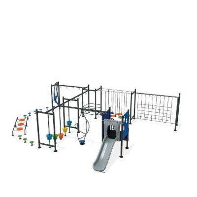 varietà di elementi tra cui reti da arrampicata, trampolini e