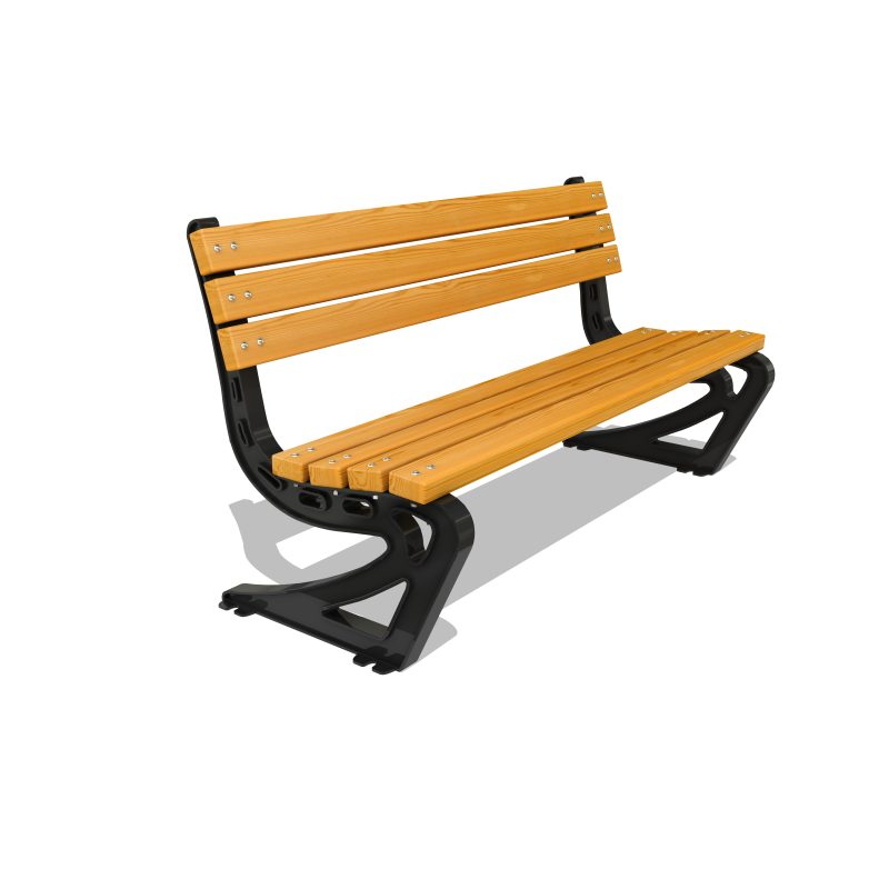 Panchina da esterno in stile classico, con eleganti gambe in alluminio pressofuso e seduta in legno di pino di prima scelta. Trattata per resistere agli agenti atmosferici con impregnazione a pressione e verniciatura a polvere, è perfetta per arredo urbano, giardini, parchi e ambienti scolastici.